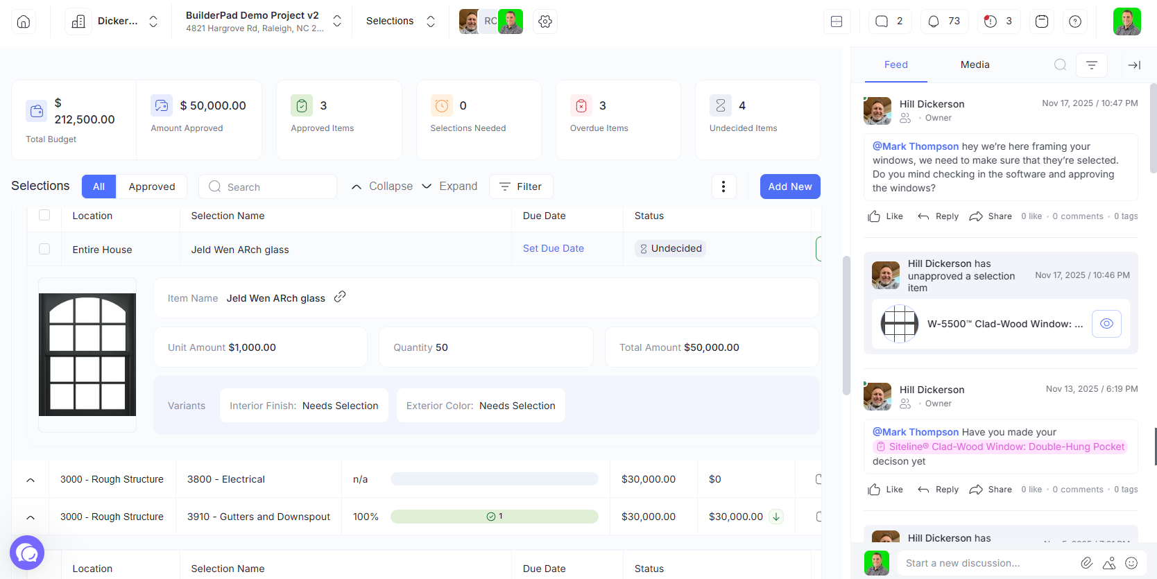 Streamline construction selections with BuilderPad’s Activity Feed. Instantly comment on specific selection items, use @mentions to notify stakeholders, and track approvals without leaving your Selections workspace.