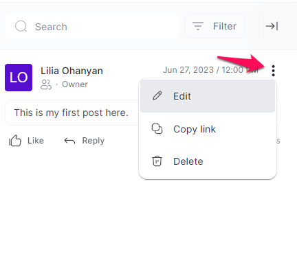 To take control of your post, simply click on the three dots. From there, you will be presented with various options to edit your post, copy its link, or delete it entirely.